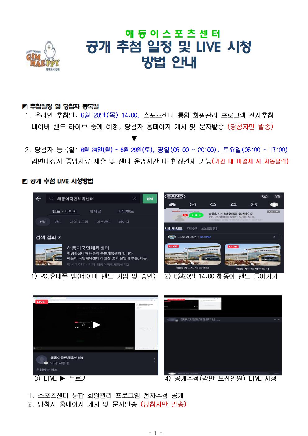 2. 온라인 공개 추첨일:6월 20일(목) 14:00 (pc라이브 중계 예정)